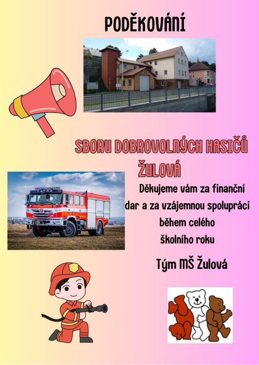Poděkování SDH Žulová Vytvořeno MŠ Žulová Úterý března 24, 2026 « Zápis do MŠ Žulová - 9.4. 2026 od 10.00 - … Poděkování AGRO CS a.s., »