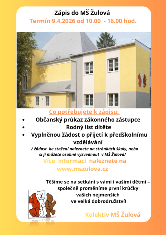Již brzy - Zápis do MŠ - 9.4.2026 od 10.00 hod