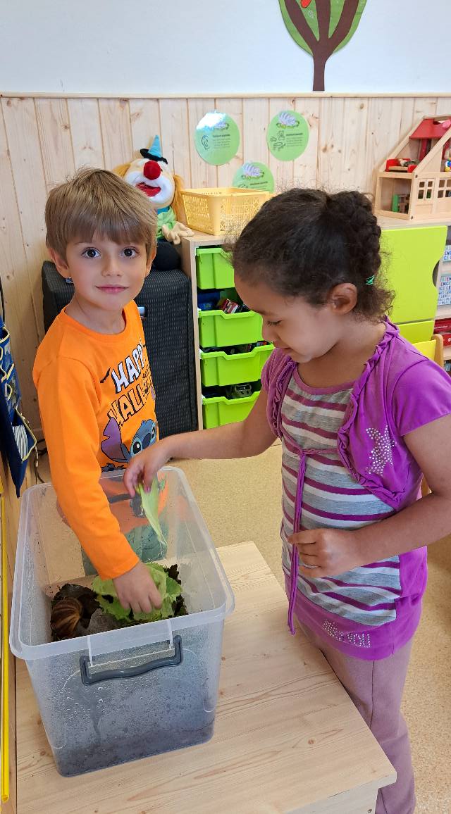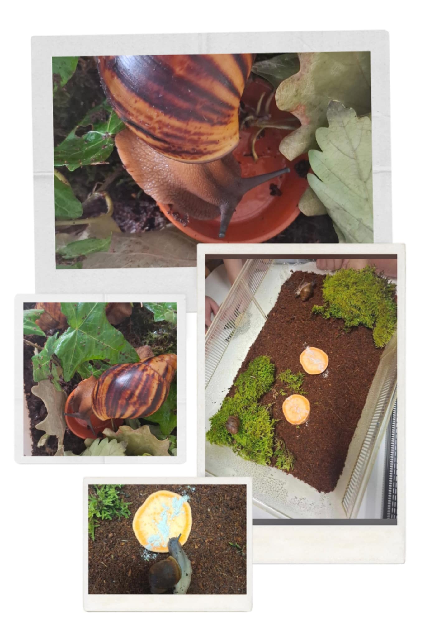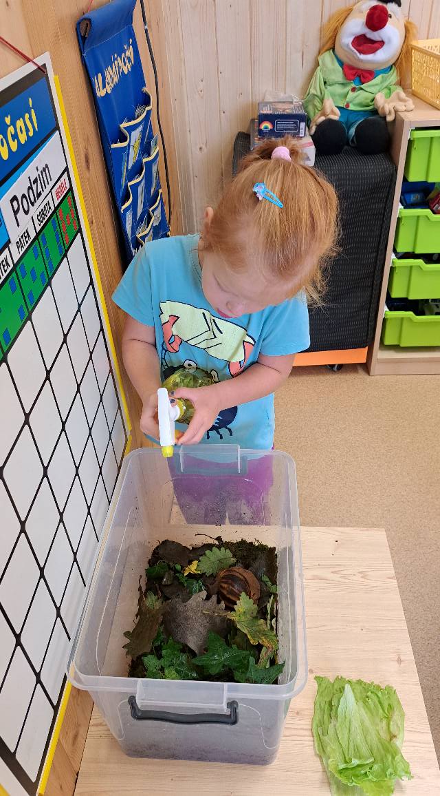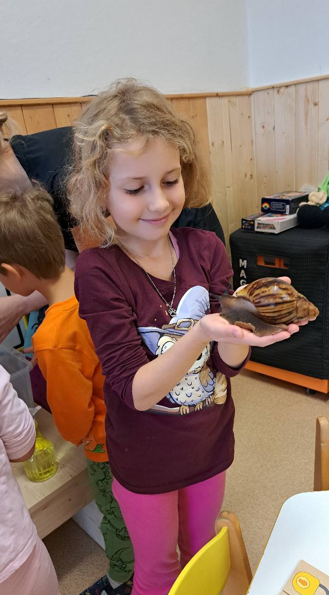 Děti se učí, jak šneky správně krmit, rosit, čistit terárium a hlavně – jak být trpěliví a starostliví.