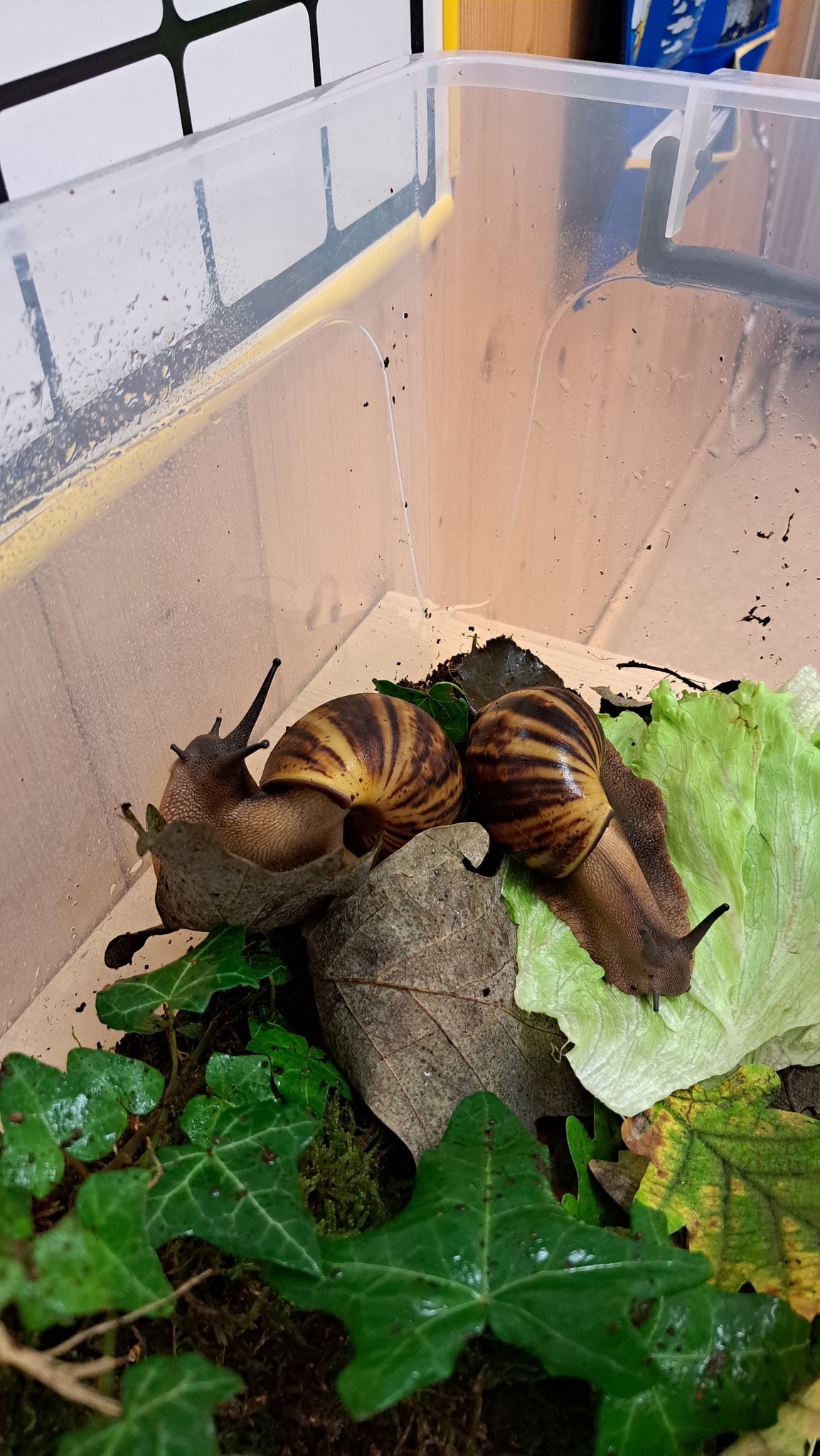 Tito šneci pocházejí z daleké Afriky a jsou jedni z největších suchozemských šneků na světě! Můžou dorůst až 20 centimetrů a žijí klidně i 10 let. Mají rádi vlhké prostředí, zeleninu, ovoce a hlavně – pozornost a péči, které se jim u nás dostává každý den.