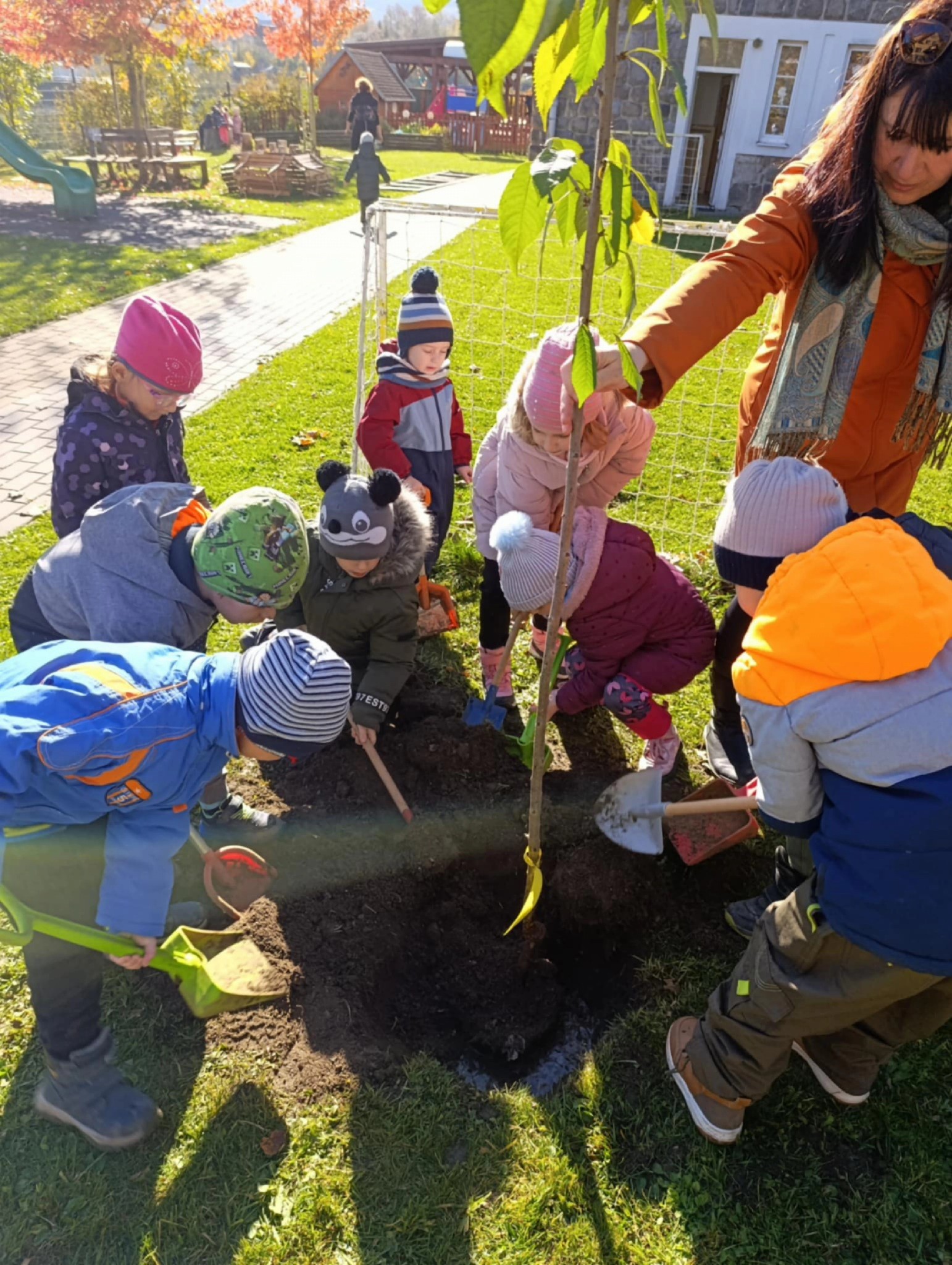 Děkujeme Ovocným stromkům Bílý Potok za dar, který není jen kusem zeleně, ale začátkem příběhu. Díky vám se stal tento den ještě výjimečnějším. Jste součástí naší školky – našeho malého světa, který roste spolu s dětmi
