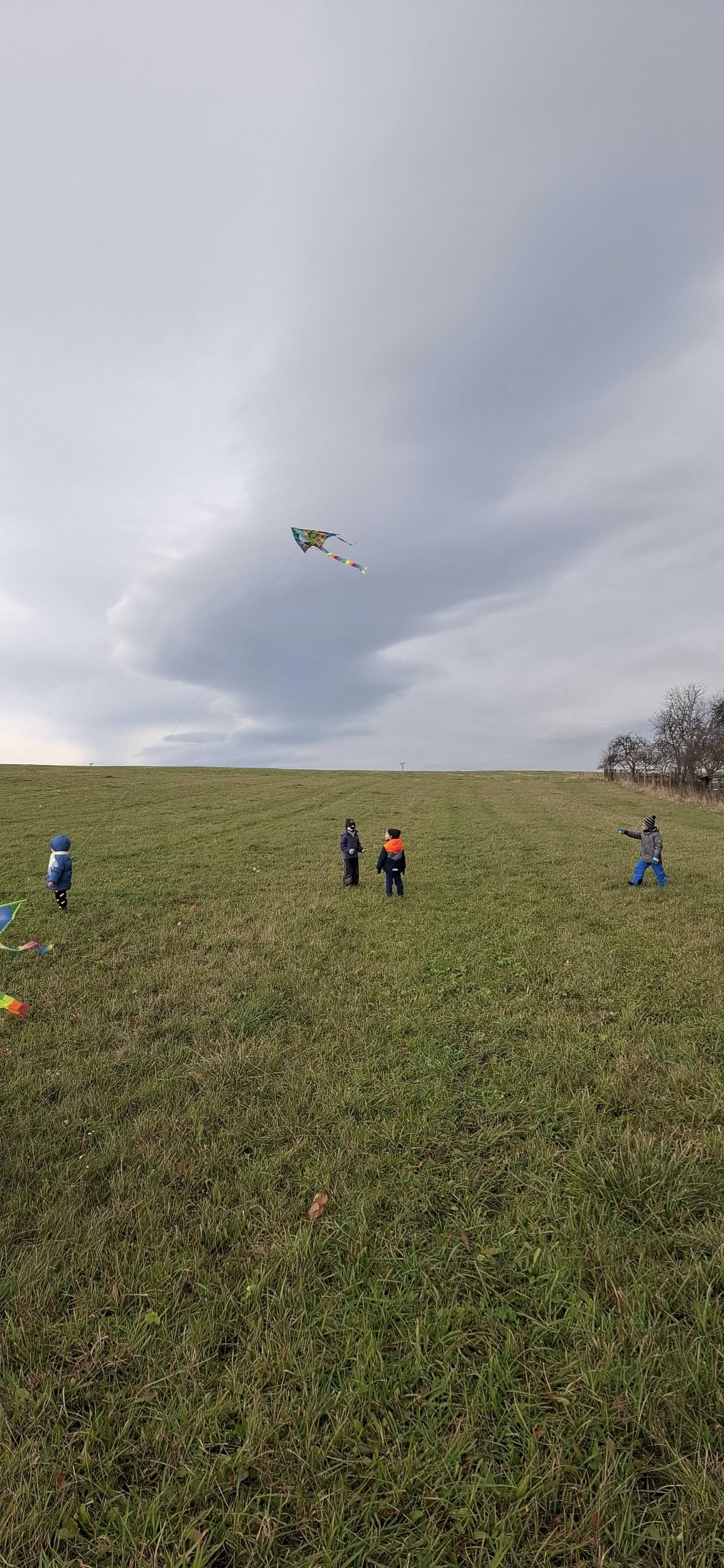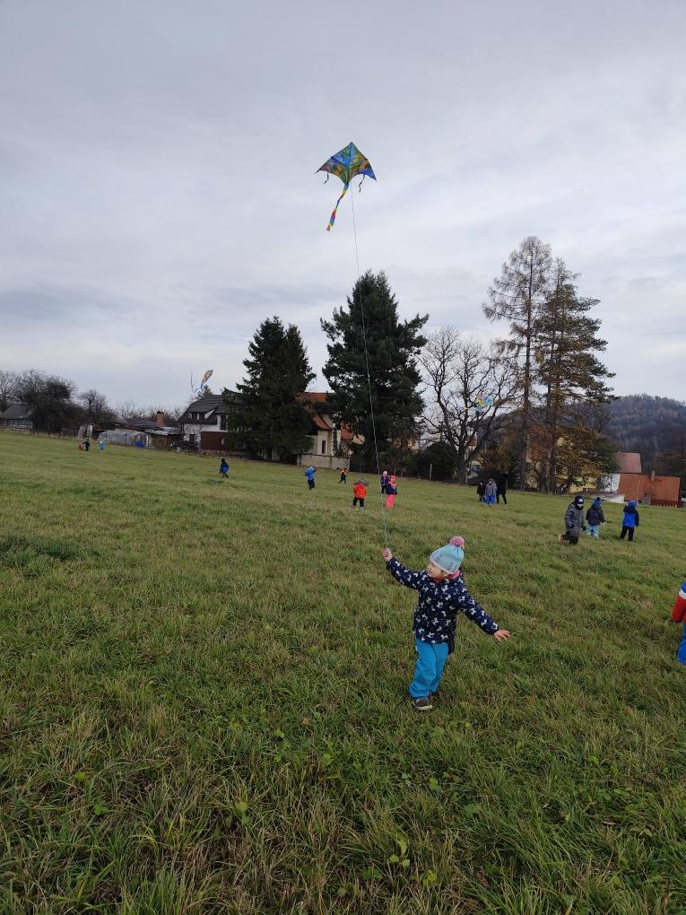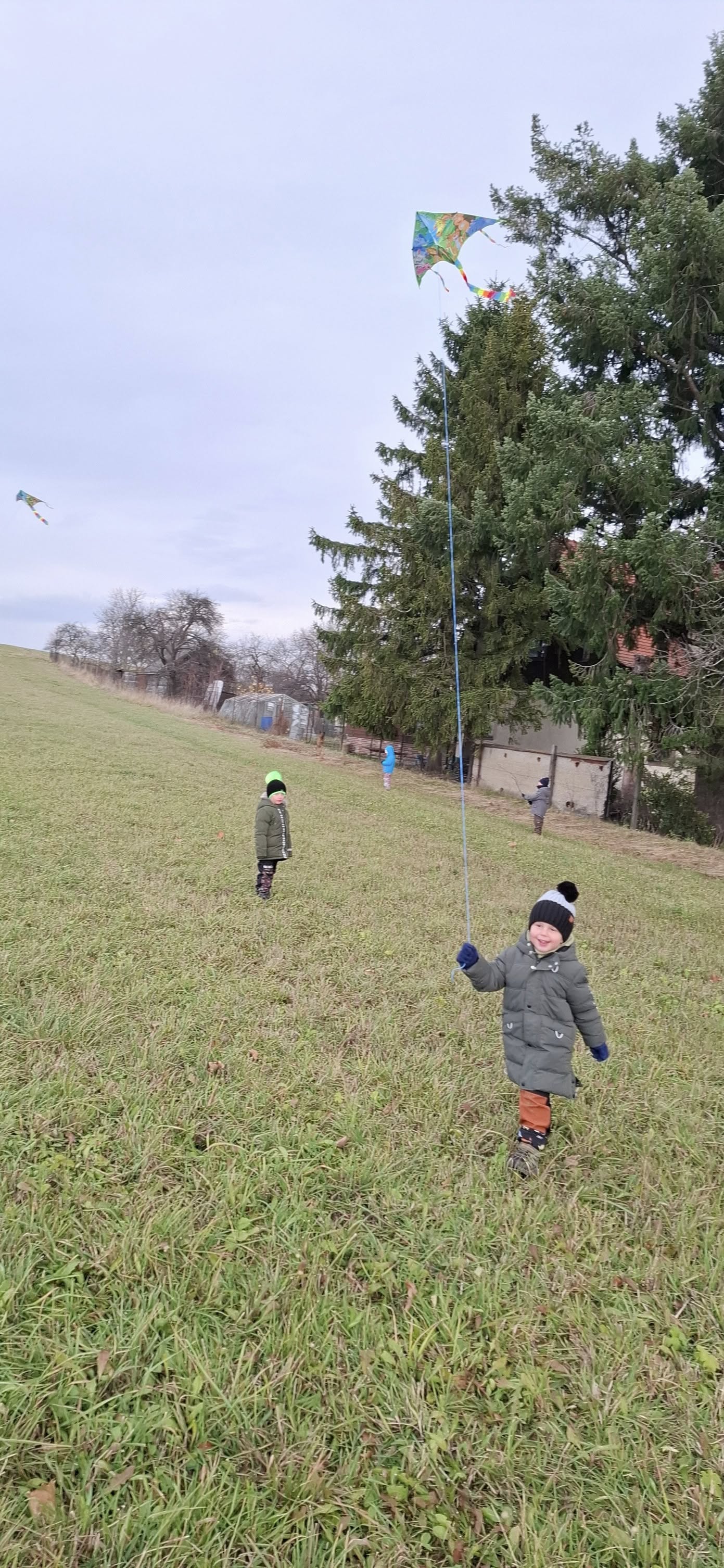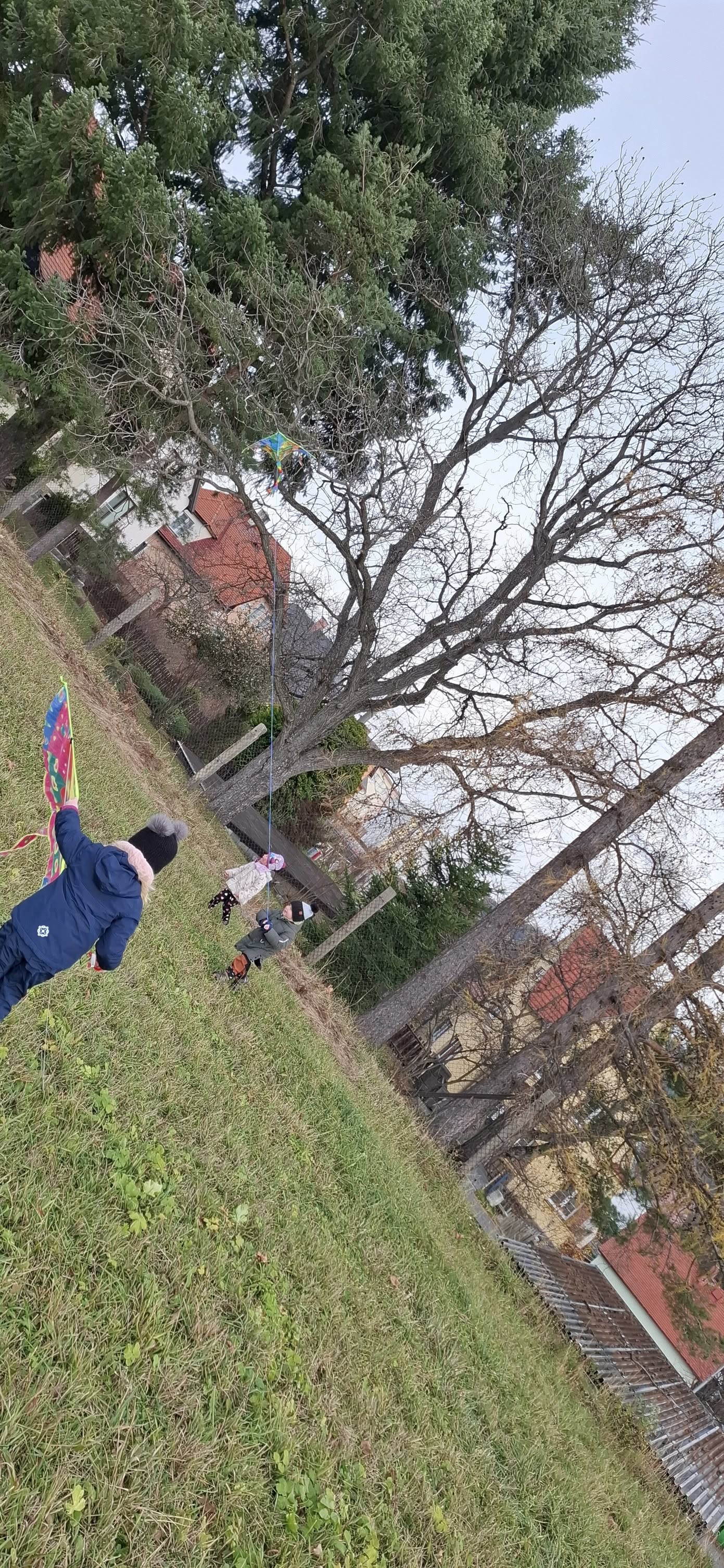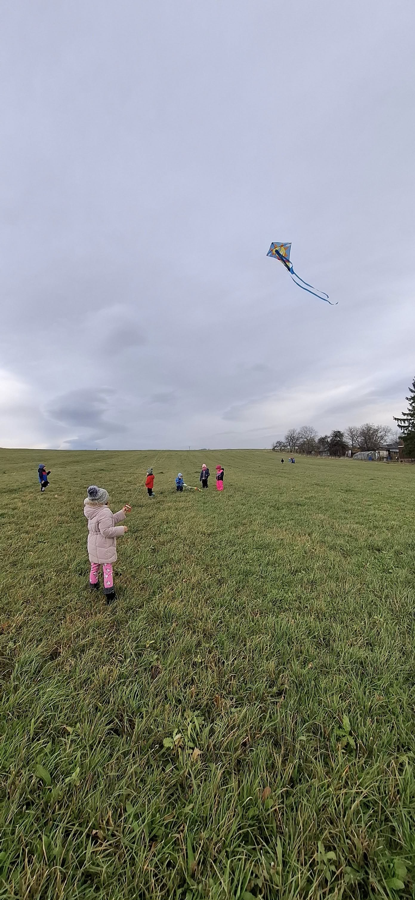 Vločky nakukují přes okraj oblaků, draci dělají piruety… A my dole? Dnes jsme je pouštěli společně s dětmi – smích, běhání, provázky všude a radost, která zahřeje víc než kabát.