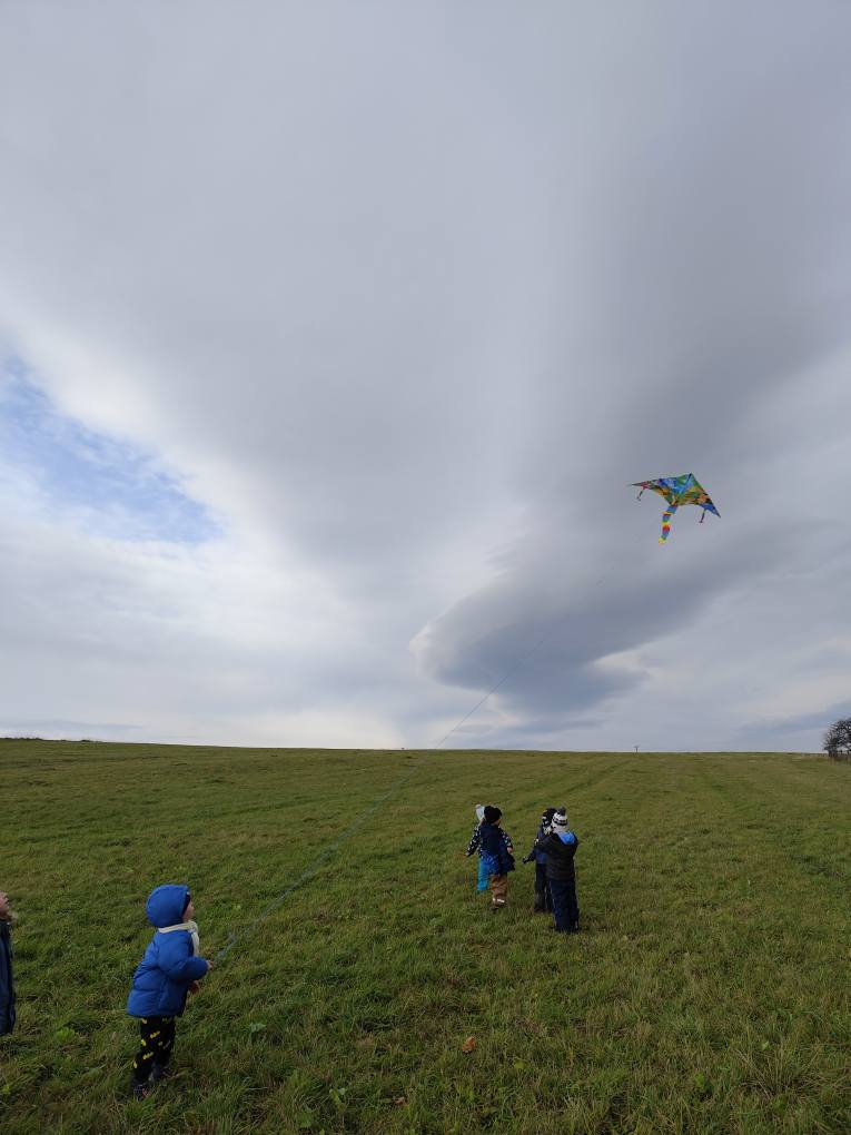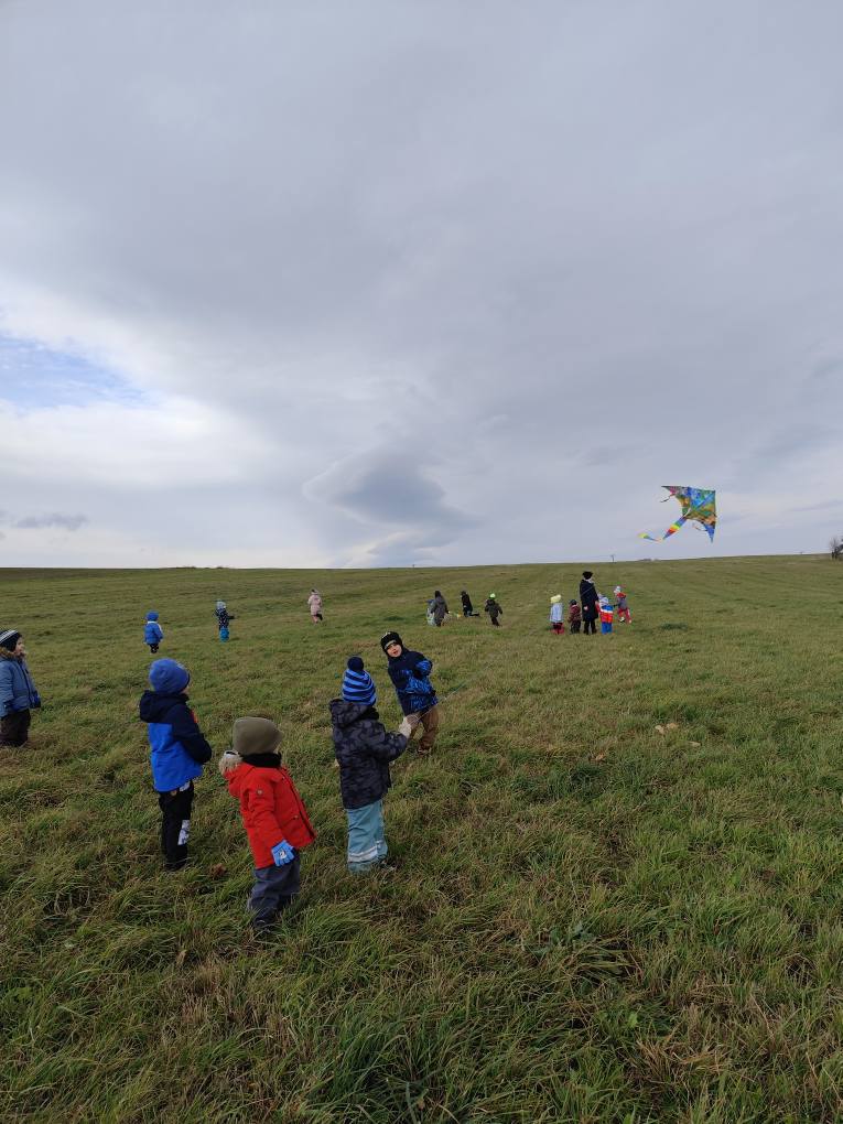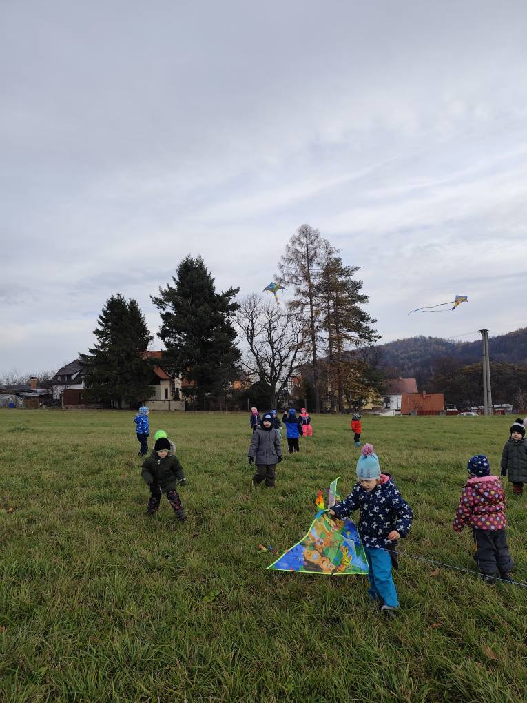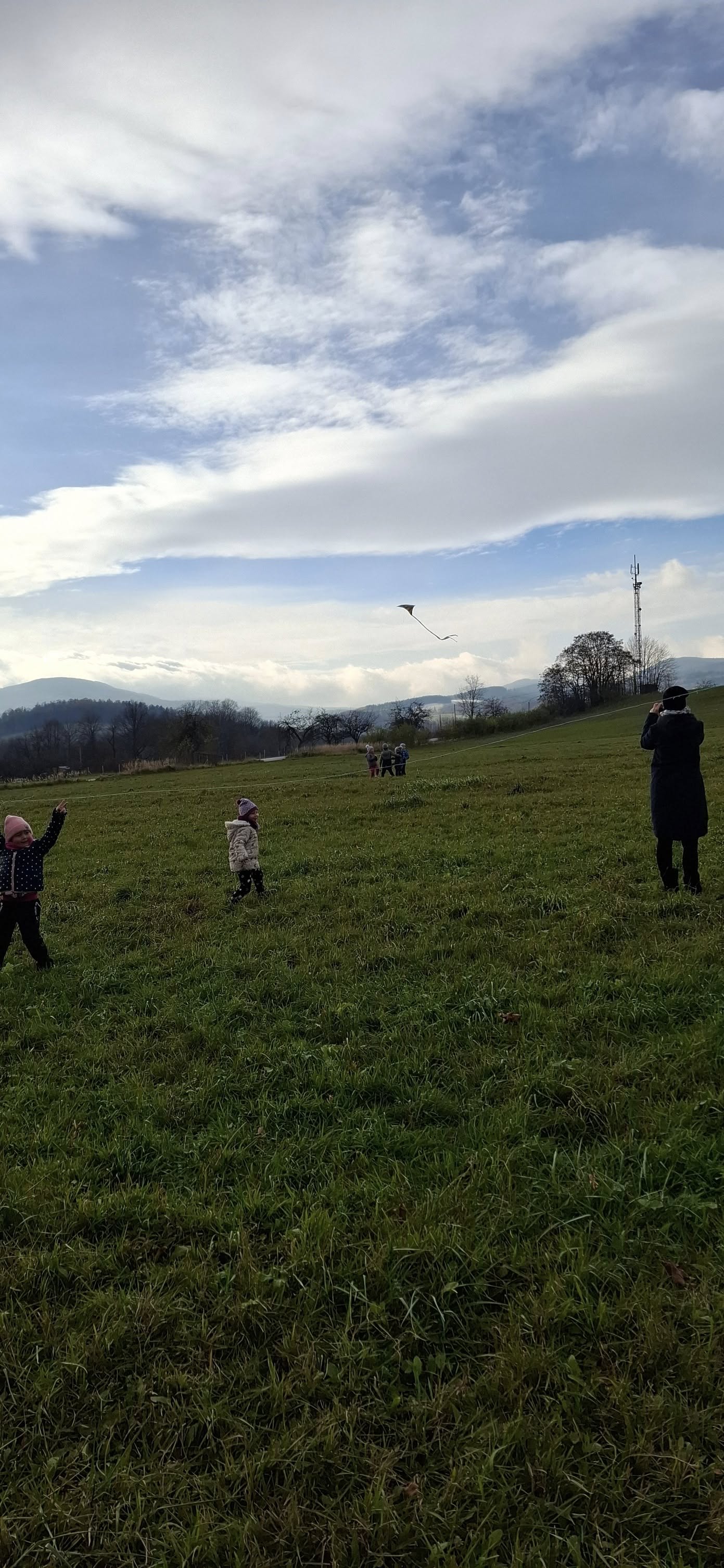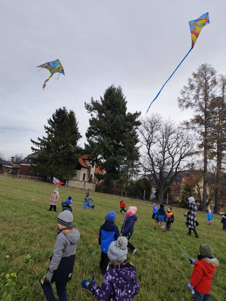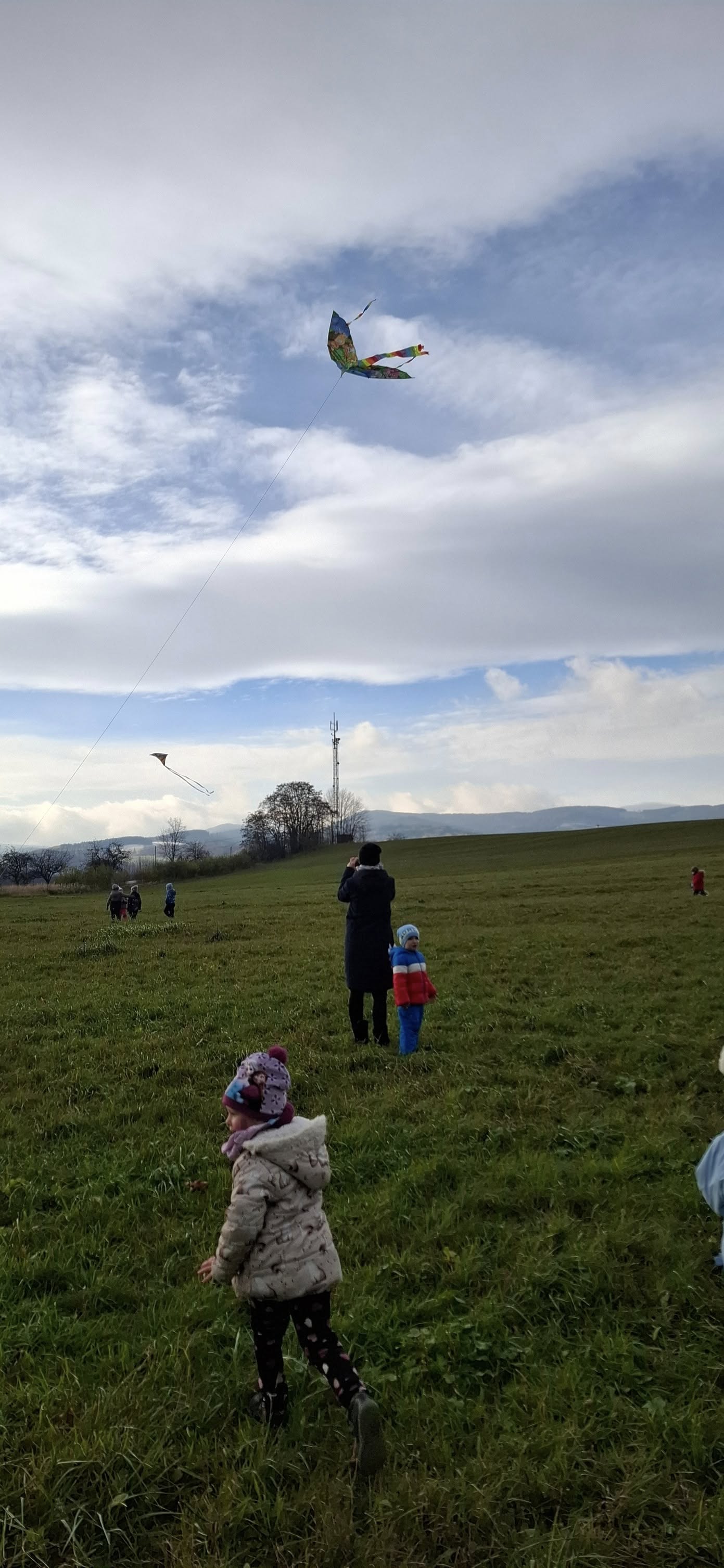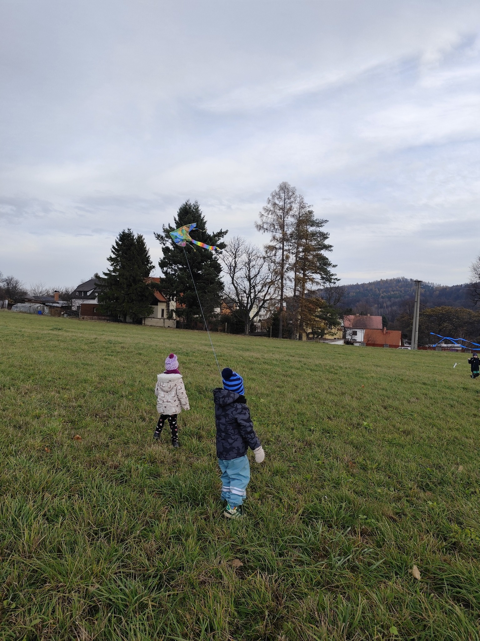 Vločky nakukují přes okraj oblaků, draci dělají piruety… A my dole? Dnes jsme je pouštěli společně s dětmi – smích, běhání, provázky všude a radost, která zahřeje víc než kabát.