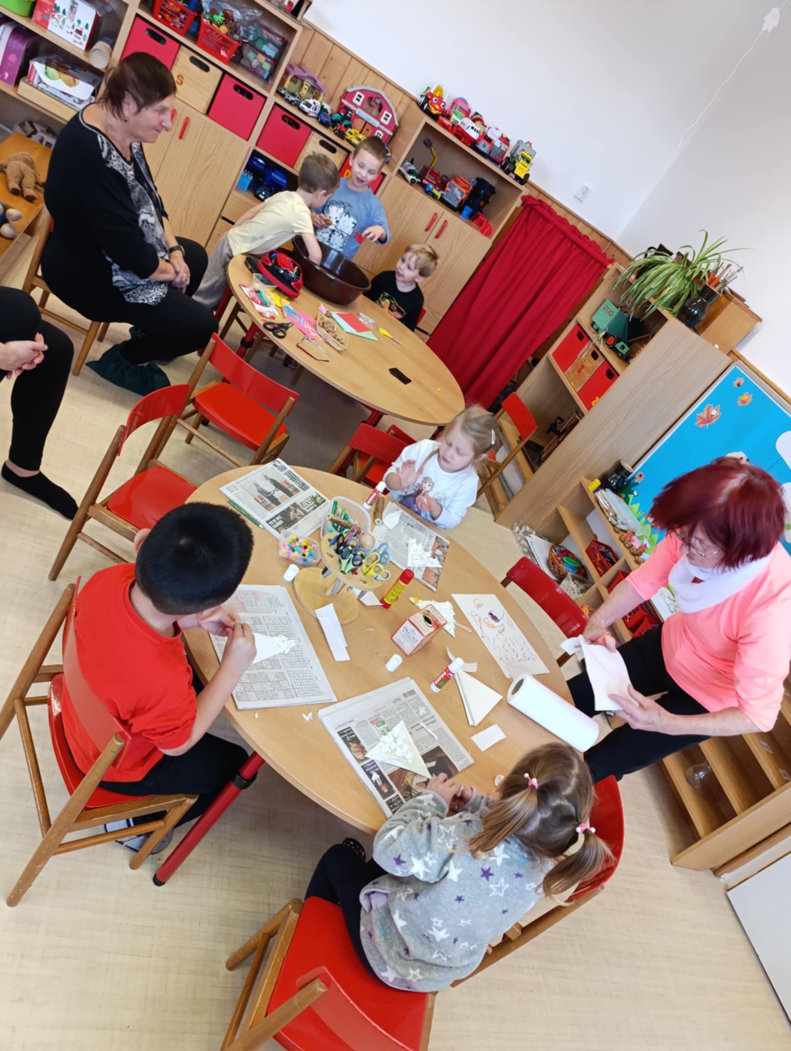Společné dopoledne na sv. Martina v naší mateřské škole se neslo v duchu laskavosti, tvořivosti a krásného propojení dvou světů – světa nejmenších a světa zkušeností, které přináší věk. Zavítaly k nám usměvavé dámy z Klubu Šikulky, aby společně s dětmi prožily chvíle naplněné tvořením a vzájemnou inspirací.
