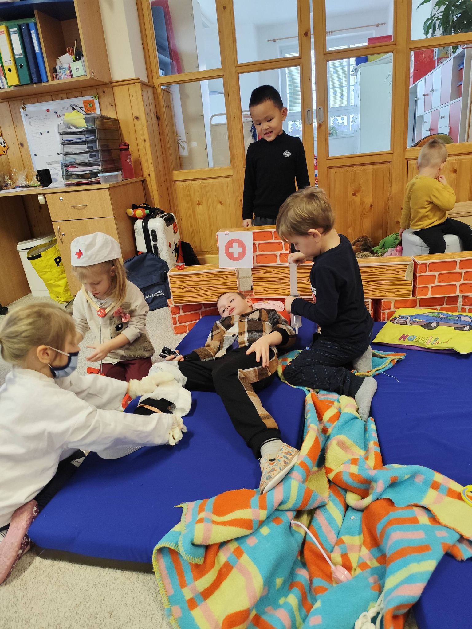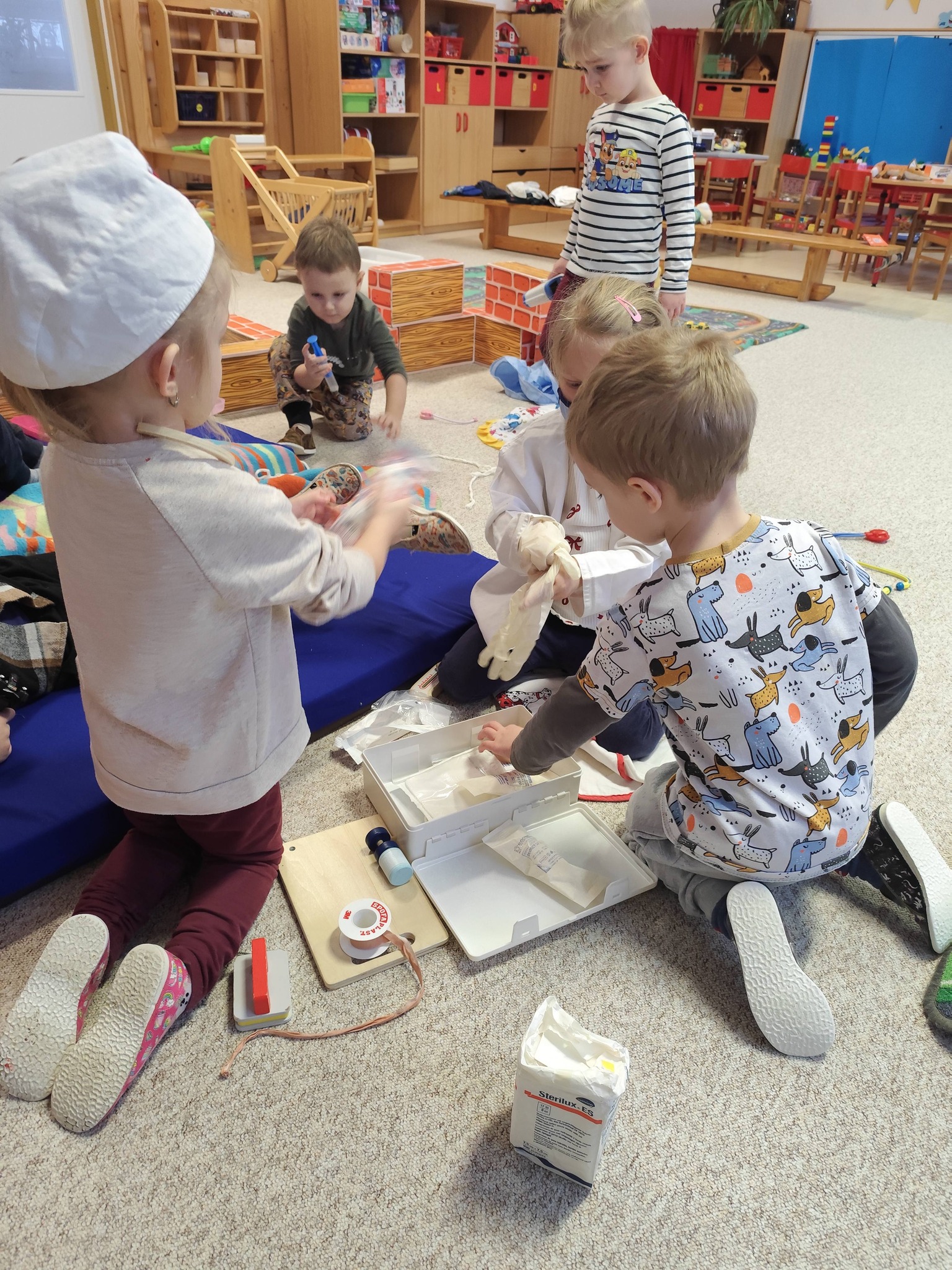 Hravou formou si hrály na ošetřování, vzájemně se staraly o své kamarády, poslouchaly „srdíčko“, ošetřovaly bolístky a učily se, jak pomáhat druhým.