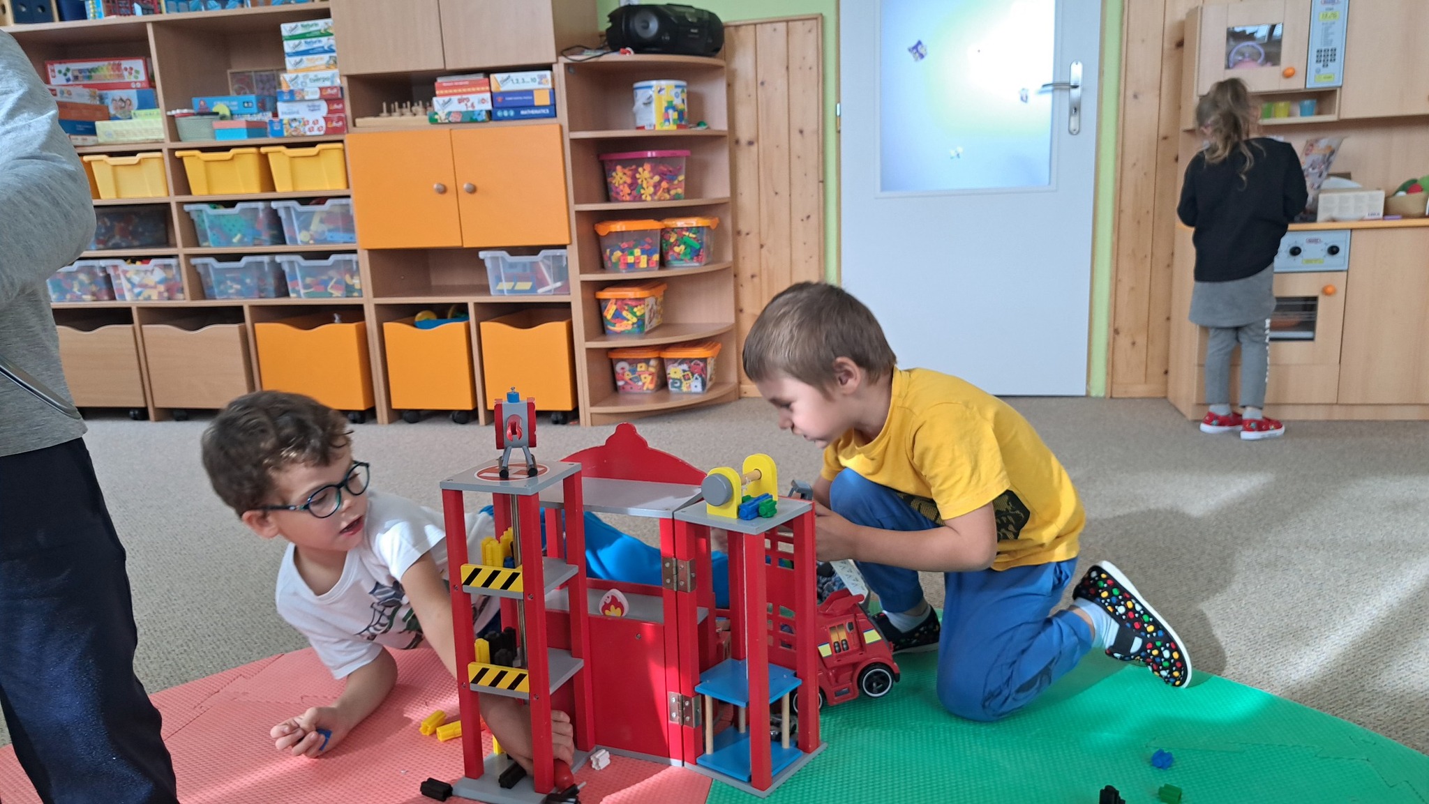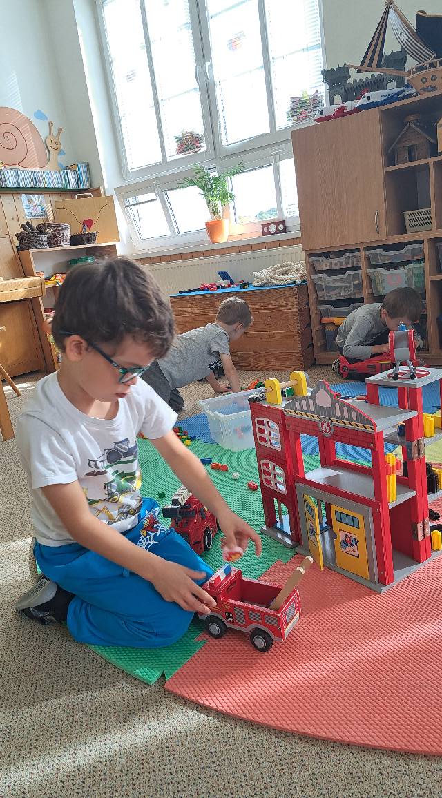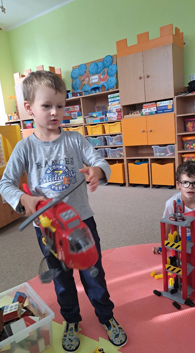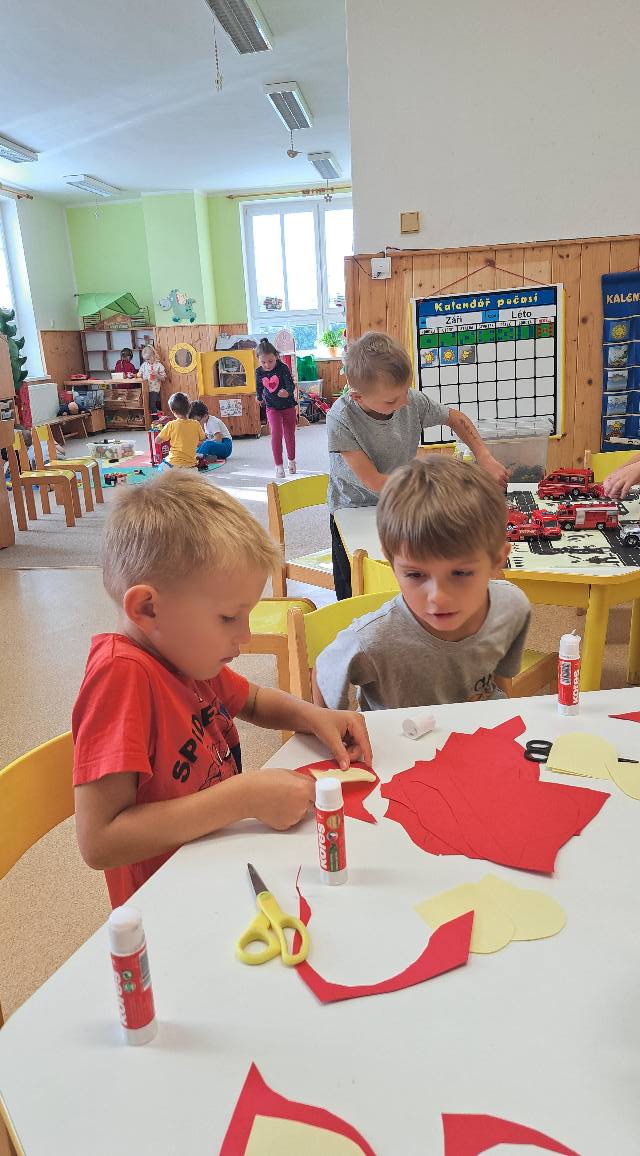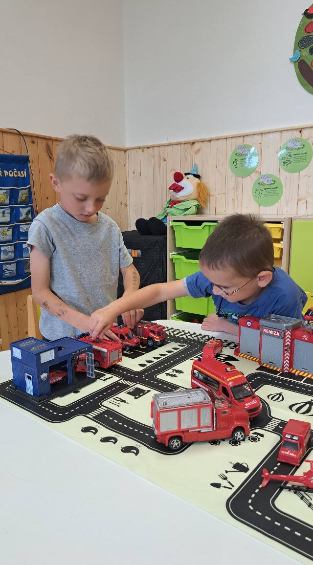 Během tematického týdne si děti hravou formou připomněly důležitou roli hasičů při povodních v roce 2024. Tvořily obrázky, hrály si na hasiče a společně jsme si povídali o tom, jaké nebezpečí může voda přinášet. Děti se dozvěděly, jak hasiči pomáhali lidem v ohrožení, zachraňovali majetek i životy, a proč je jejich práce tak důležitá v krizových situacích. Pracovali jsme s emocemi dětí.
