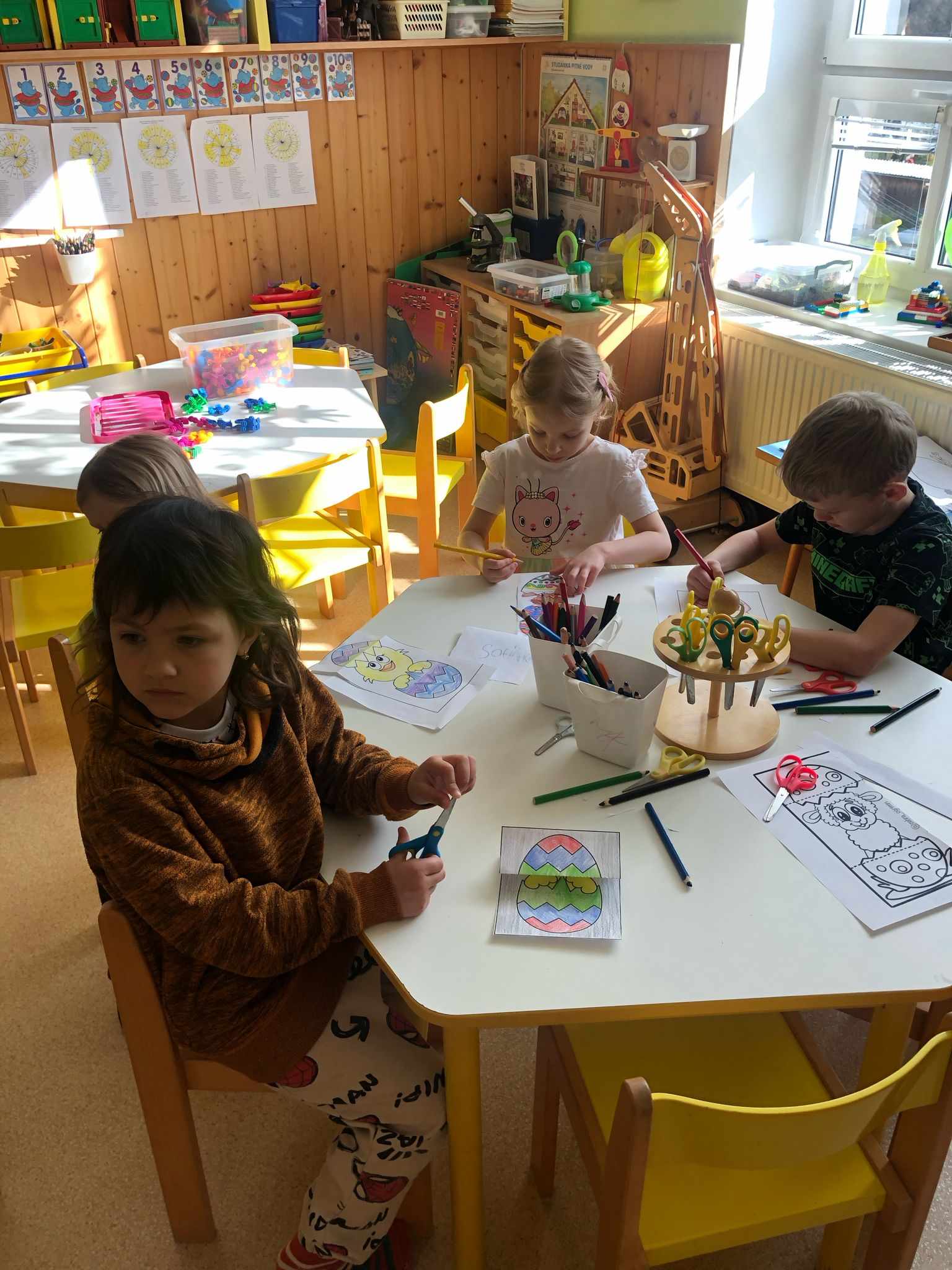 Vejce, štětec, barvička – malujeme vajíčka.Koťátka se tento týden připravují na Velikonoce... Celou dobu je doprovází slepička Evelýna...Děti malovaly vajíčka, tvořily, hledaly zatoulaná vajíčka slepičce, nosily vajíčka po překážkové dráze, vyhlížely slepice na vycházkách, tvořily kraslice, zkoušely vyfoukávat vajíčka![]()