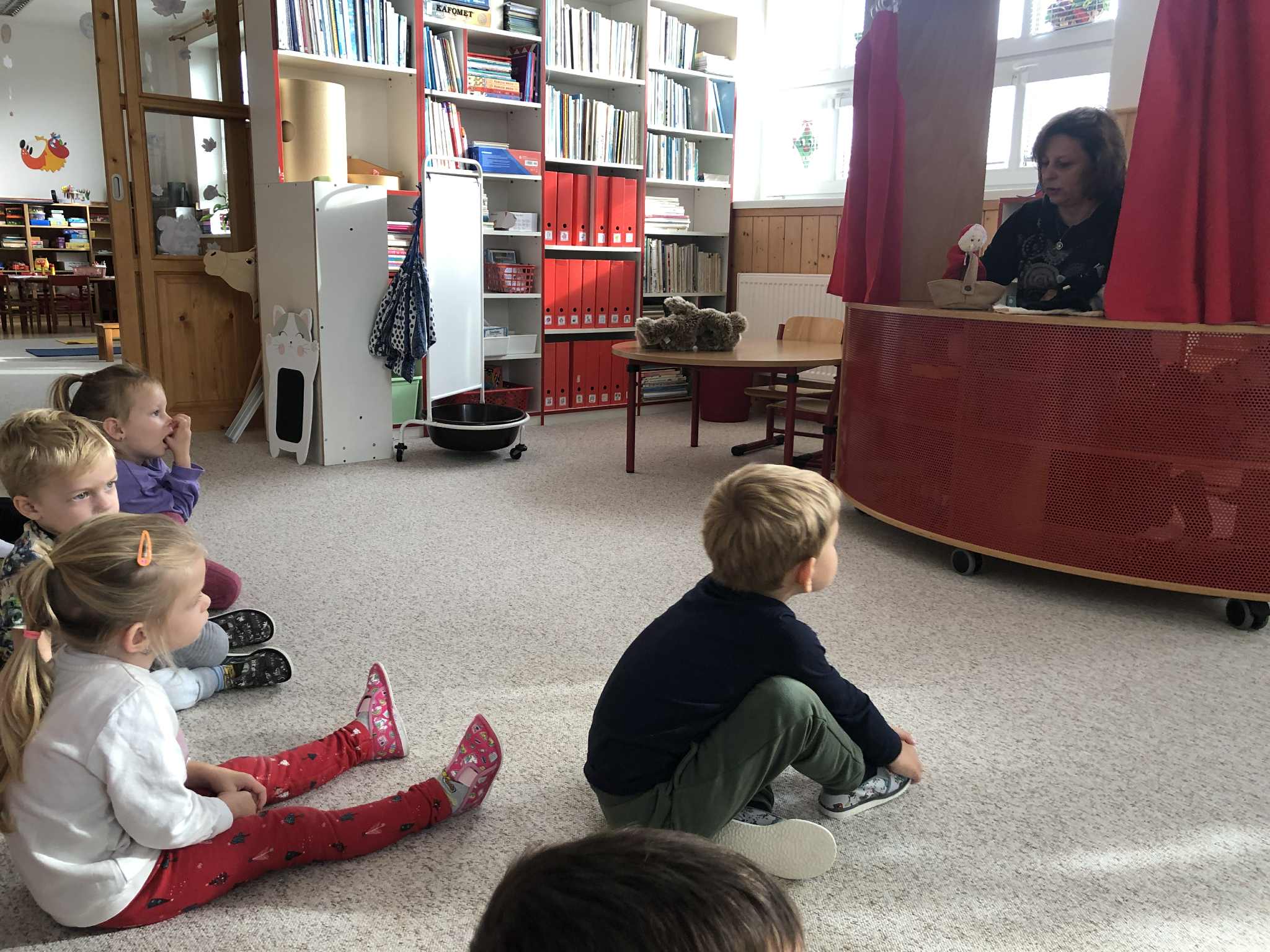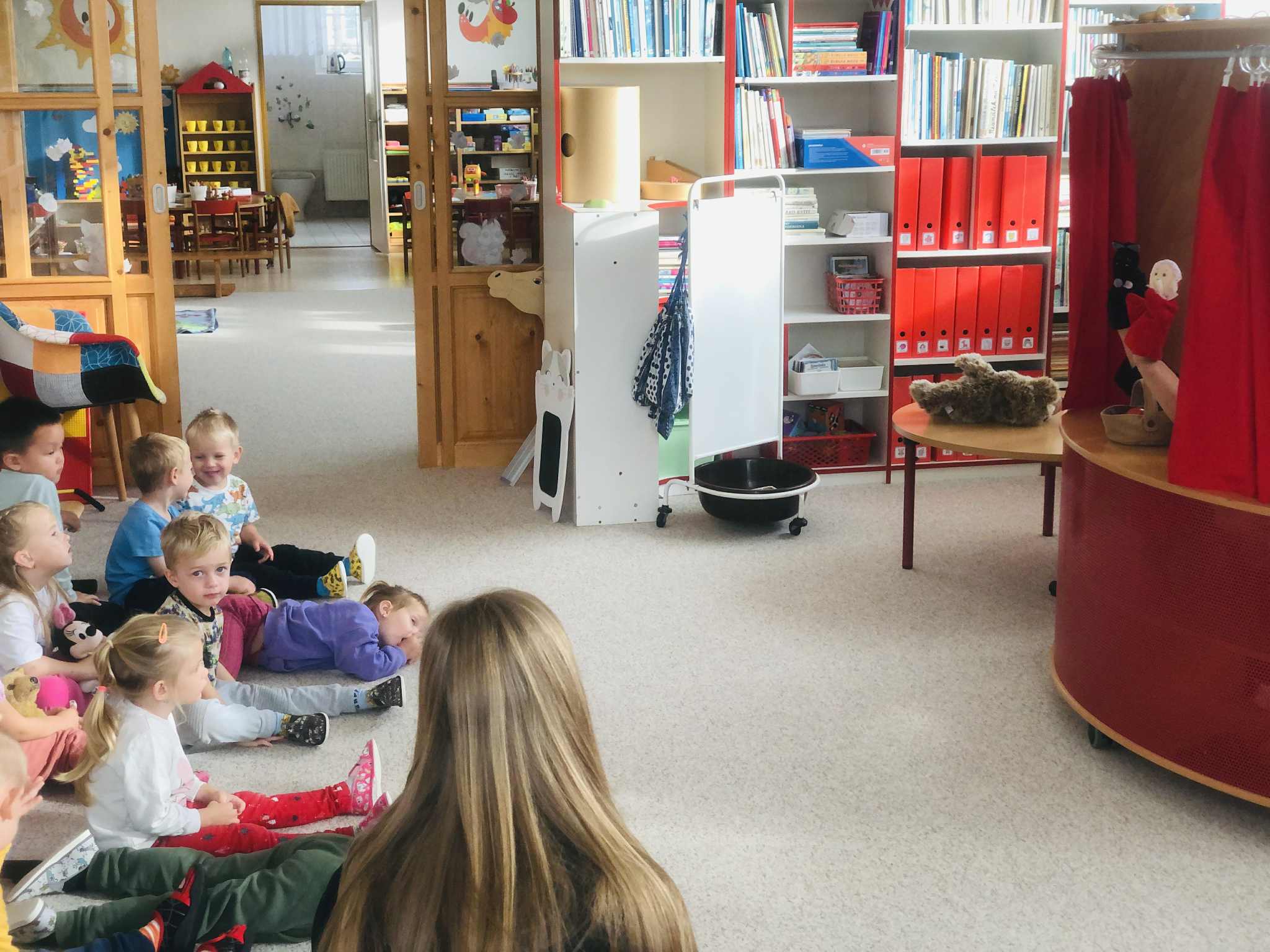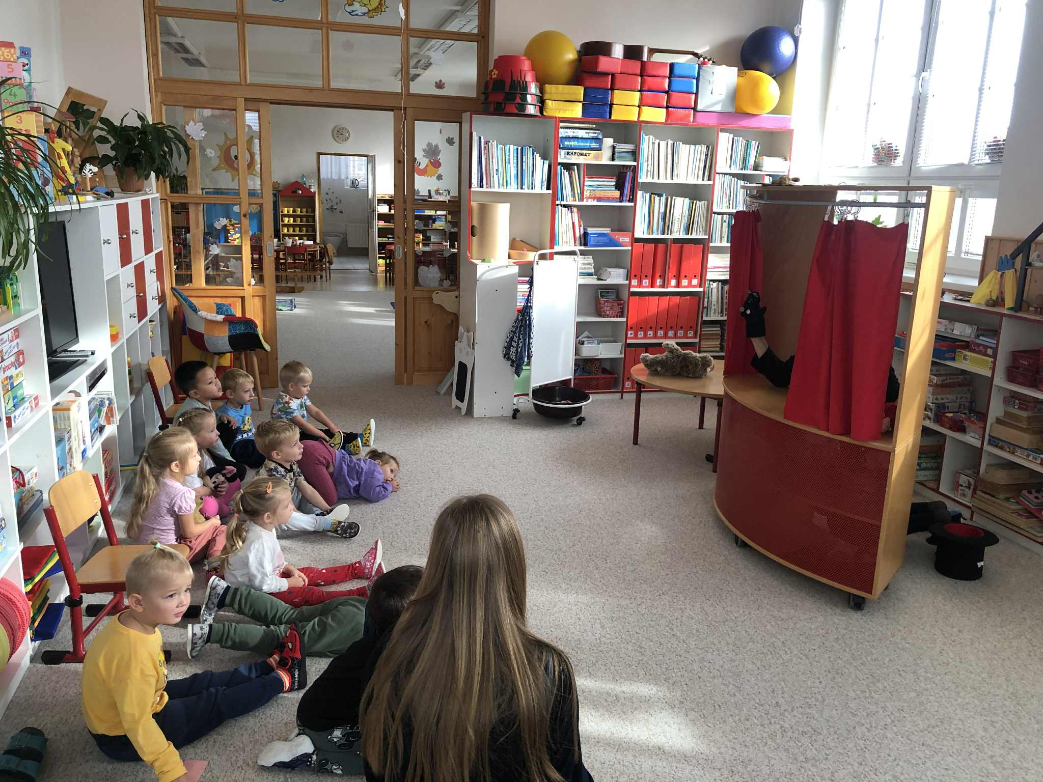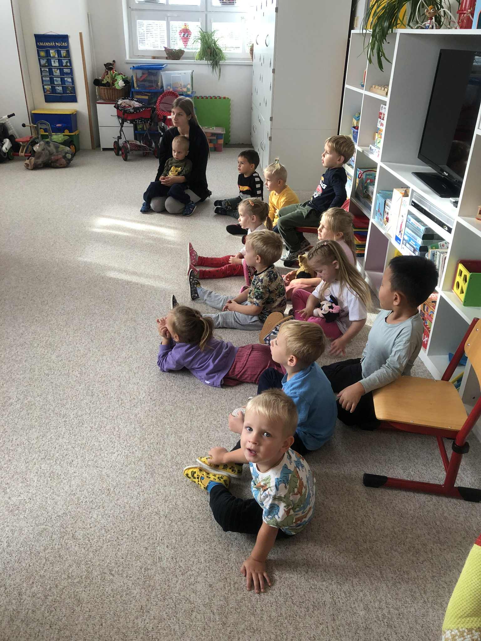 Sluníčka se pomalu adaptují na mateřskou školu.Děti si poslechly pohádku o Červené Karkulce, která je zaujala svým příběhem o odvaze a opatrnosti. Společně také tvořily naši „školku“ , srdíčkové pravidlo - obtiskávaly své ručičky, díky čemuž vznikl krásný a barevný obrázek plný dětské radosti, do kterého nalepily sluníčko.....
