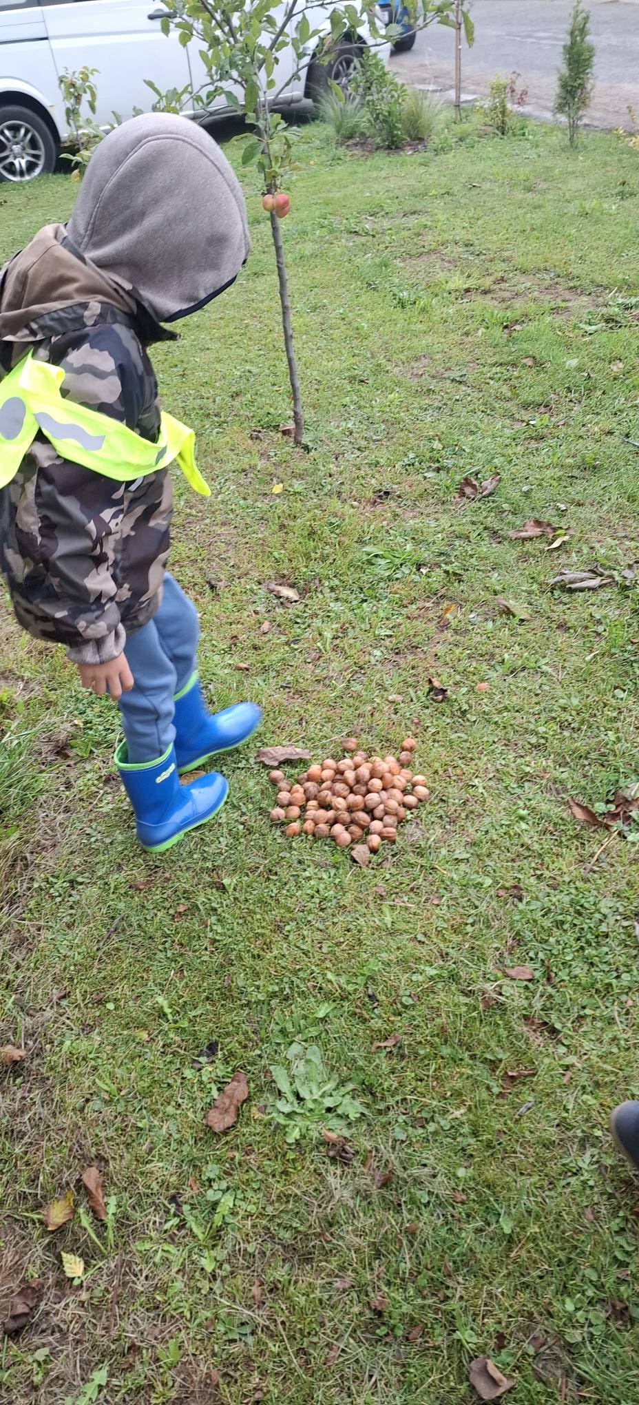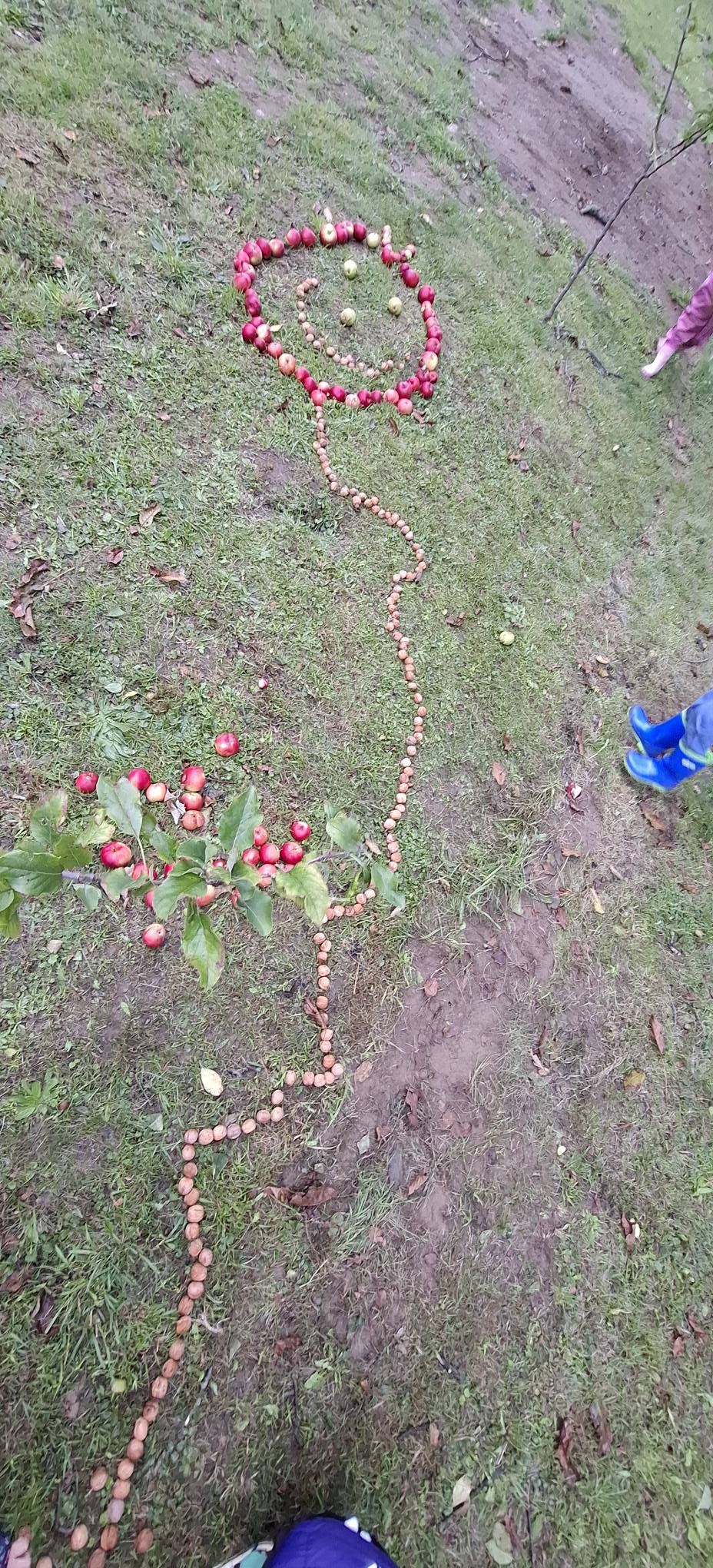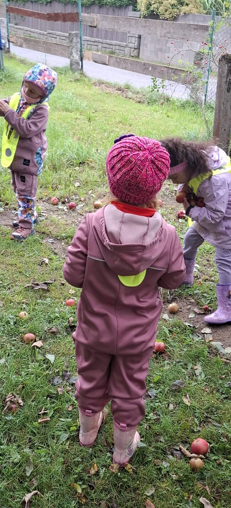 Dnešní den jsme strávili venku – poznávali jsme stromy, sbírali jejich plody a učili se, co roste kolem nás. V rámci spolupráce děti společně vytvořily krásného podzimního draka ze sesbíraných pokladů přírody.