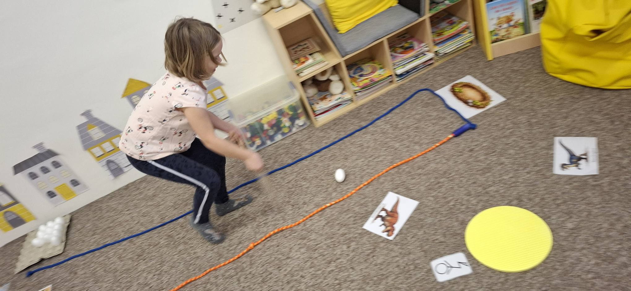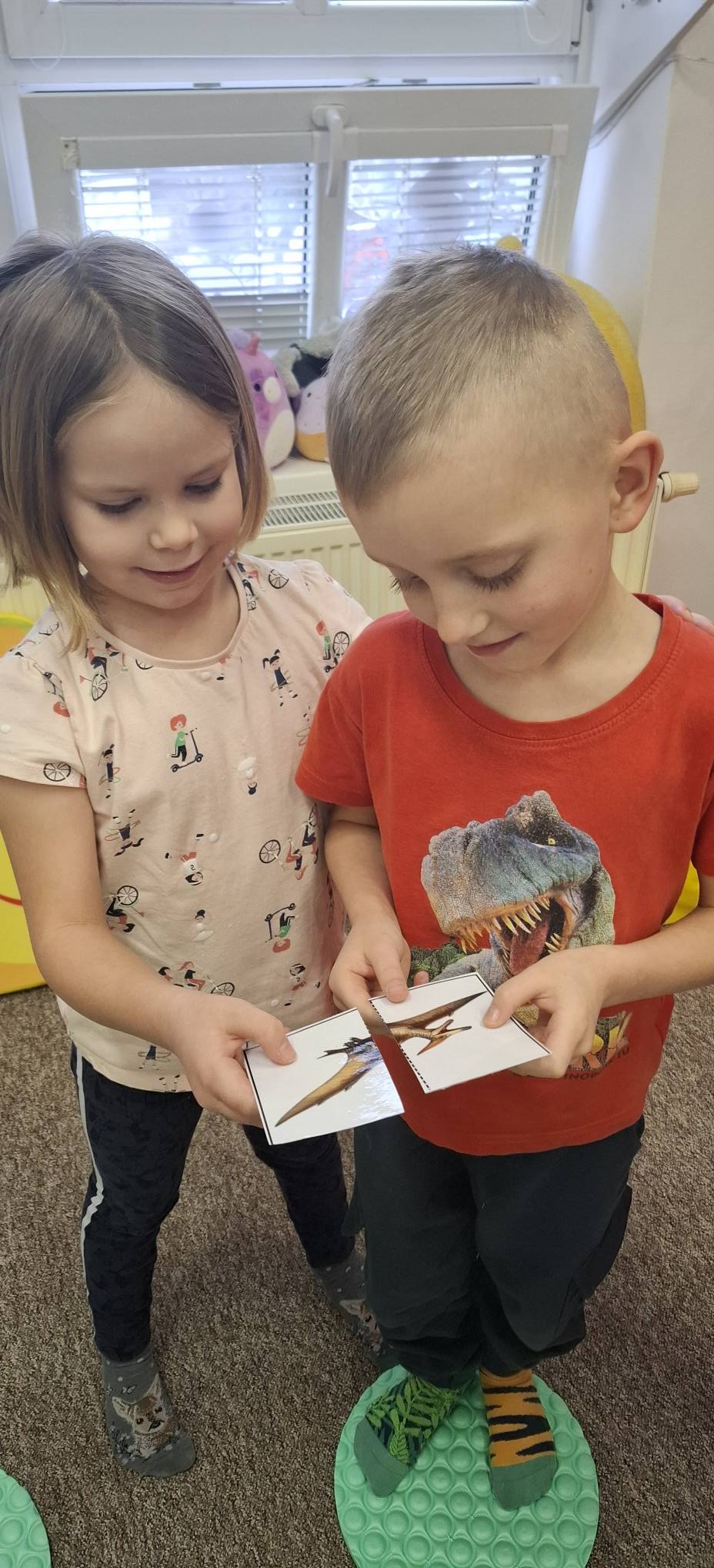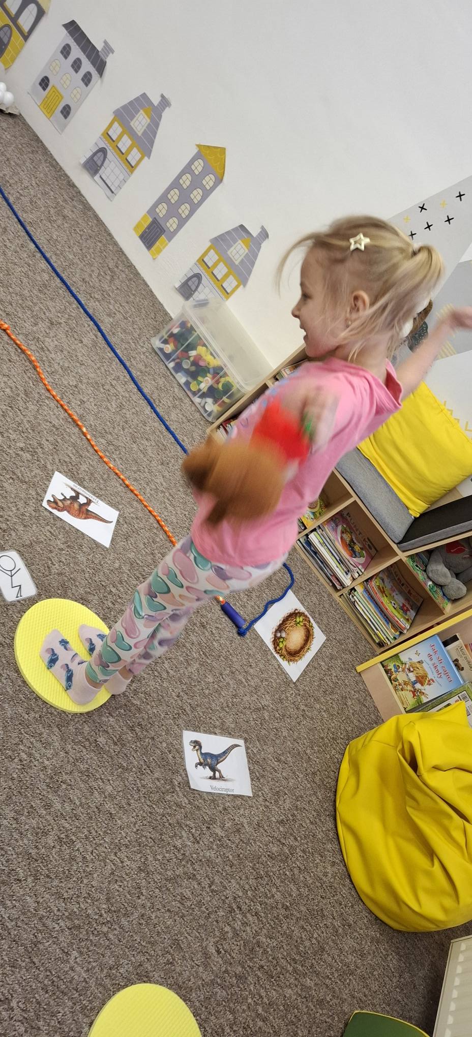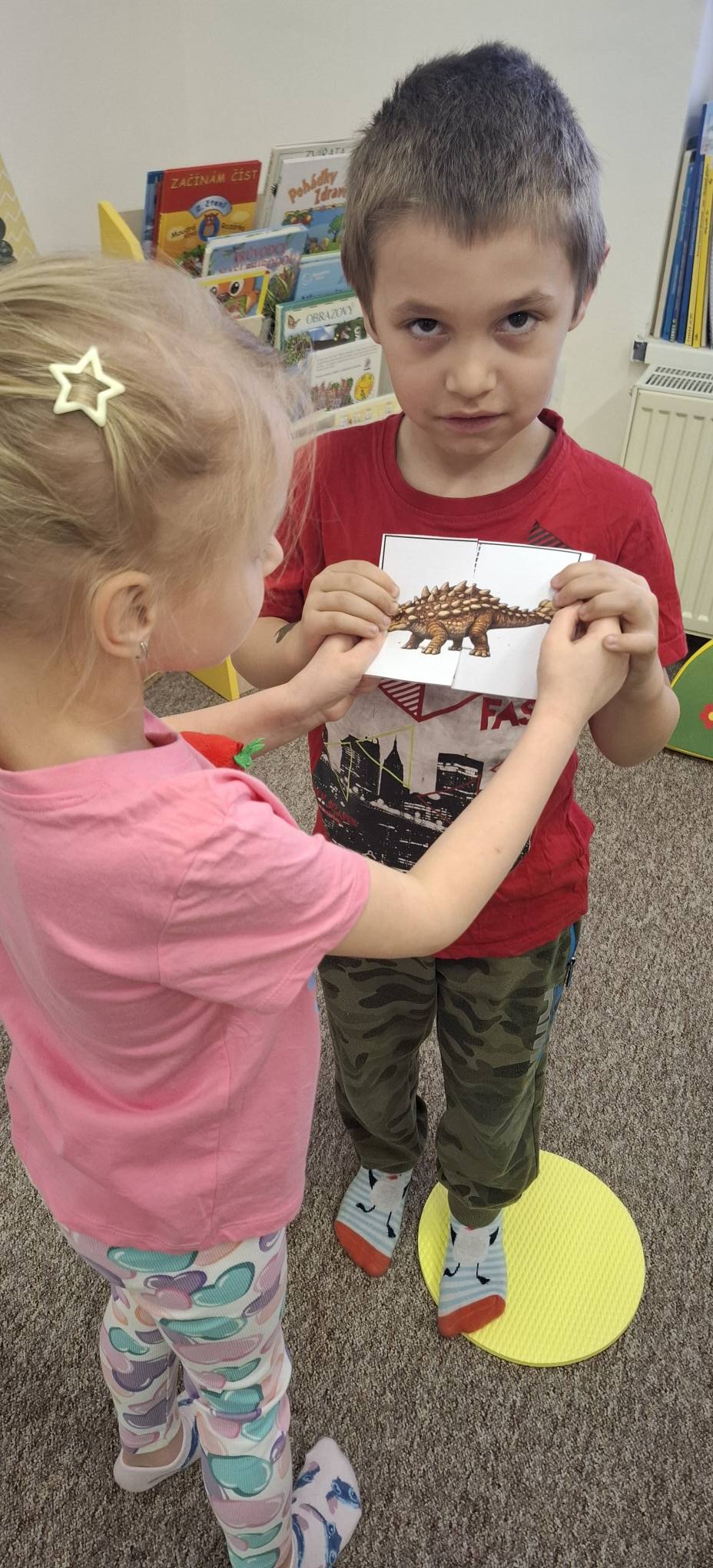 Společně jsme hledali odpovědi na otázky proč a jak, učili se přemýšlet v souvislostech a objevovat příčinu a následek. Při pohybových aktivitách jsme rozvíjeli koordinaci těla i prostorovou orientaci – zkoušeli jsme se pohybovat jako různí dinosauři, spolupracovali při hledání „pravěkého světa“ a řešili úkoly ve skupinách.