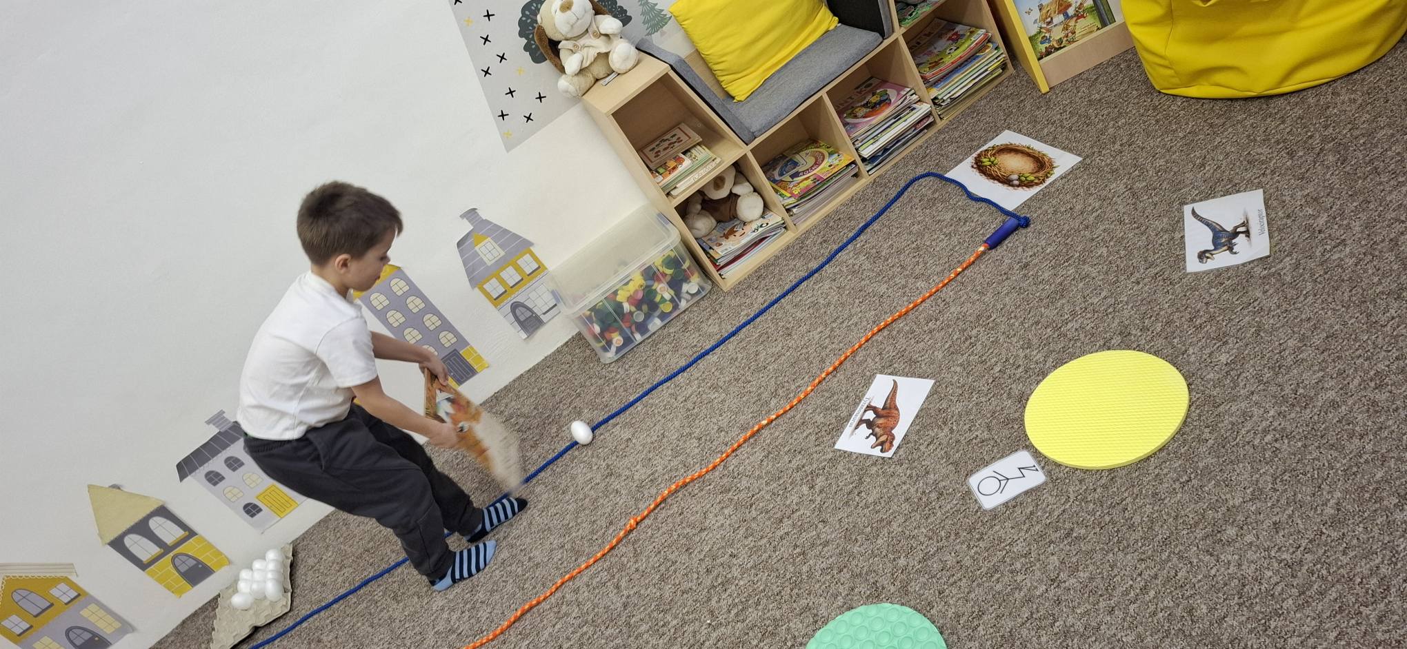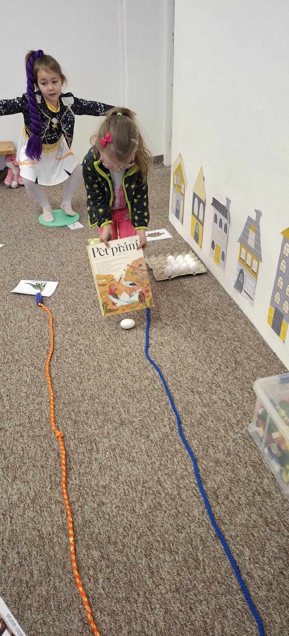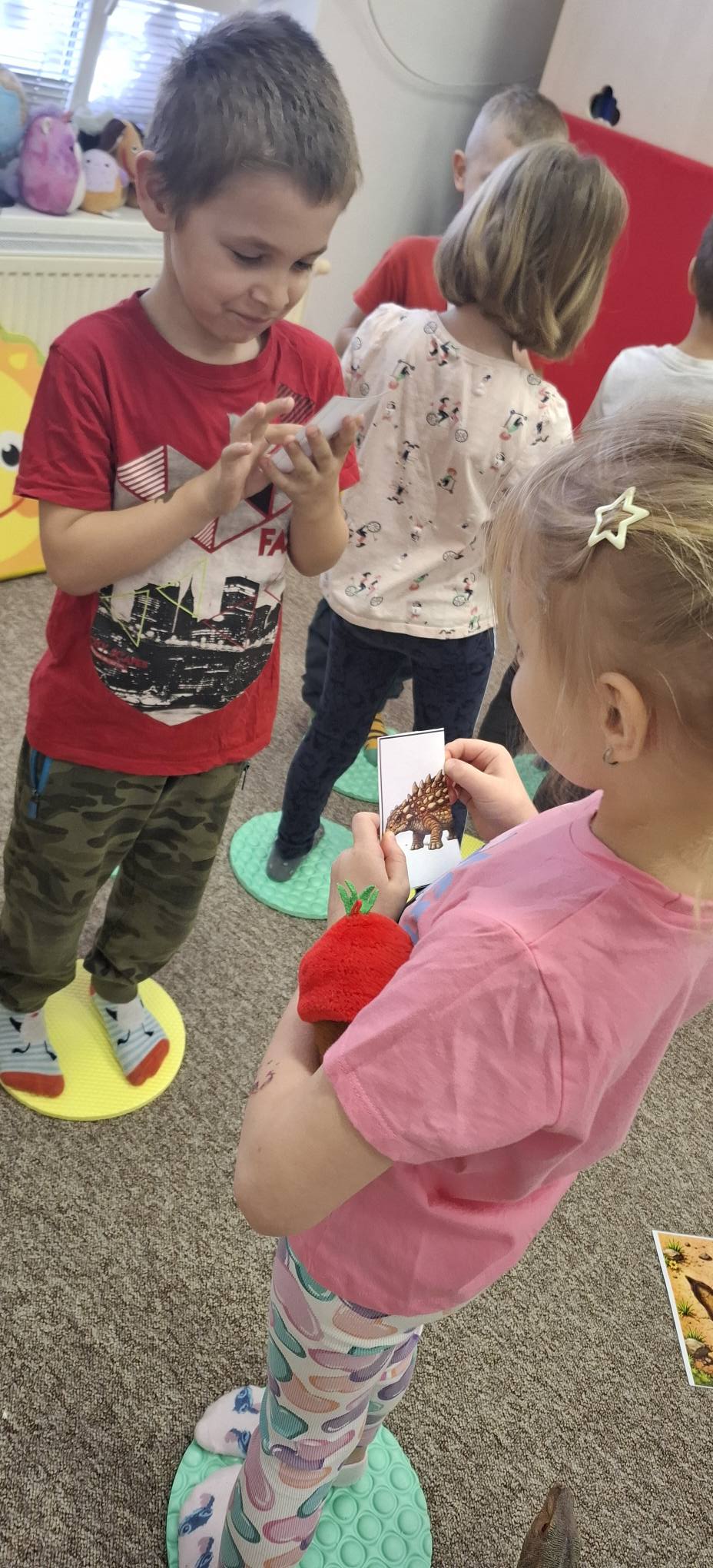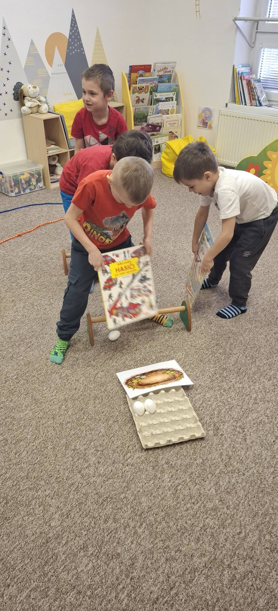 Společně jsme hledali odpovědi na otázky proč a jak, učili se přemýšlet v souvislostech a objevovat příčinu a následek. Při pohybových aktivitách jsme rozvíjeli koordinaci těla i prostorovou orientaci – zkoušeli jsme se pohybovat jako různí dinosauři, spolupracovali při hledání „pravěkého světa“ a řešili úkoly ve skupinách.