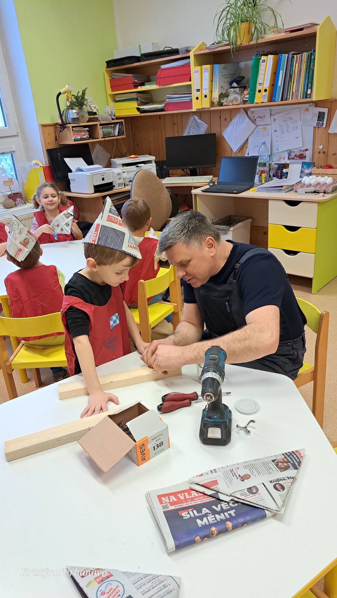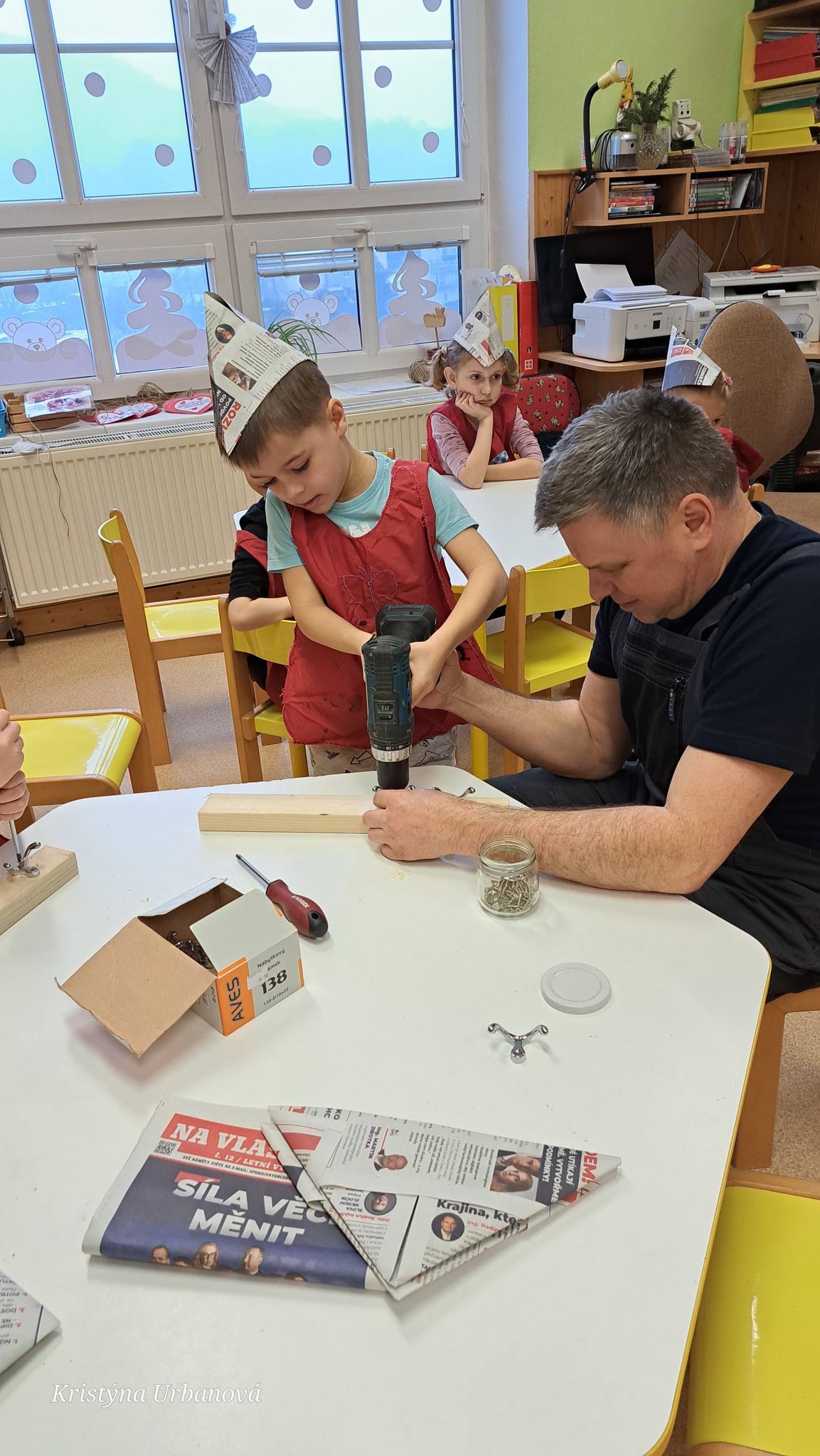 Děti malovaly a tvořily – malířské čepice nasazeny, šroubováky se točily jako vířící vrtule a vrtačka si broukala svou vrtnou melodii.